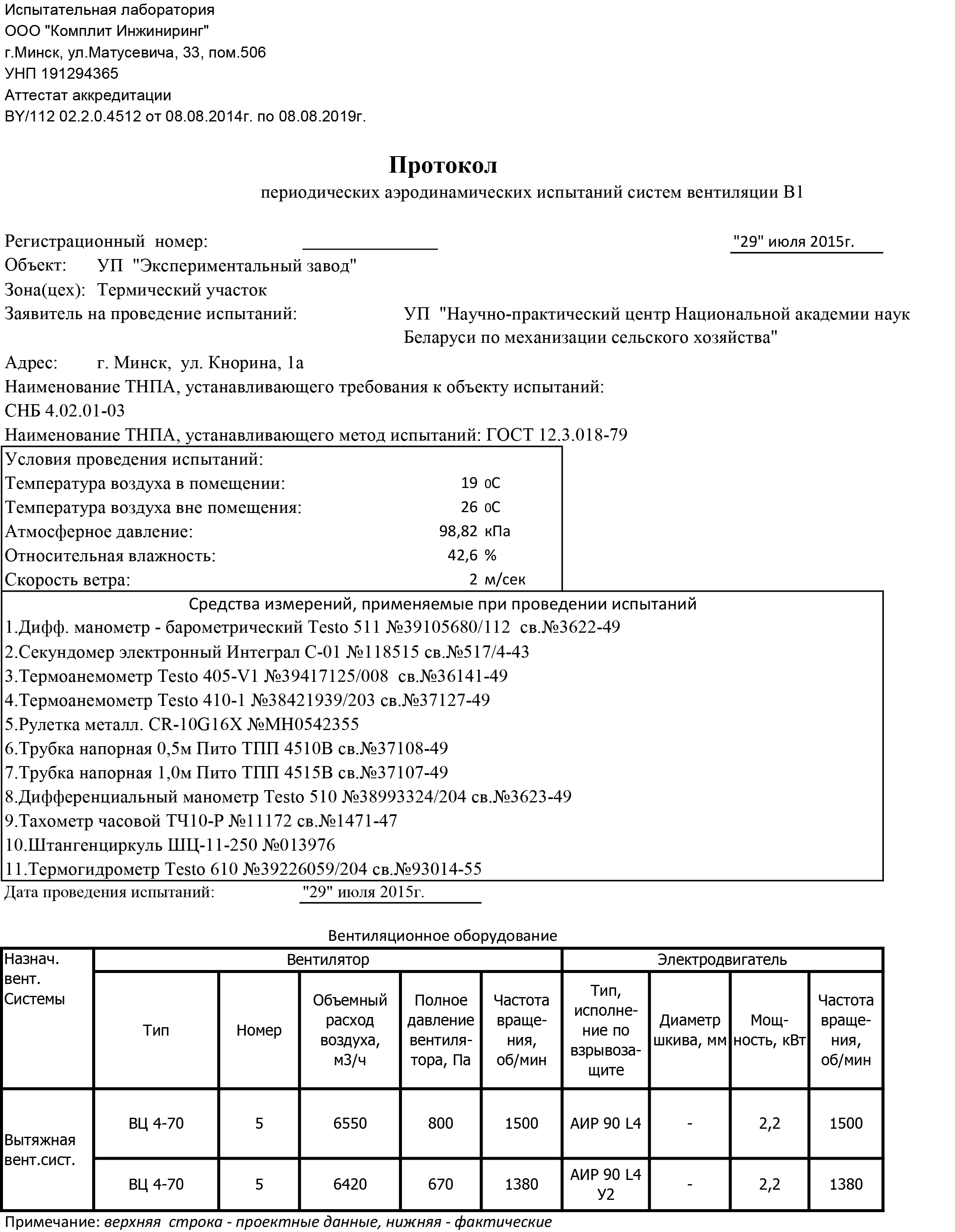 аэродинамические испытания систем вентиляции